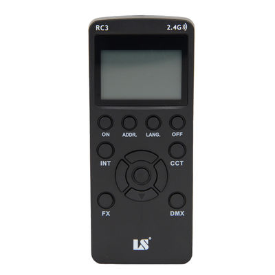 RC3 Wireless remote control allows you to wirelessly control the lighting products in a operational distance of 49’. It supports the DMX address setting on the remote control. It uses AAA battery and the battery level shows on the display screen.